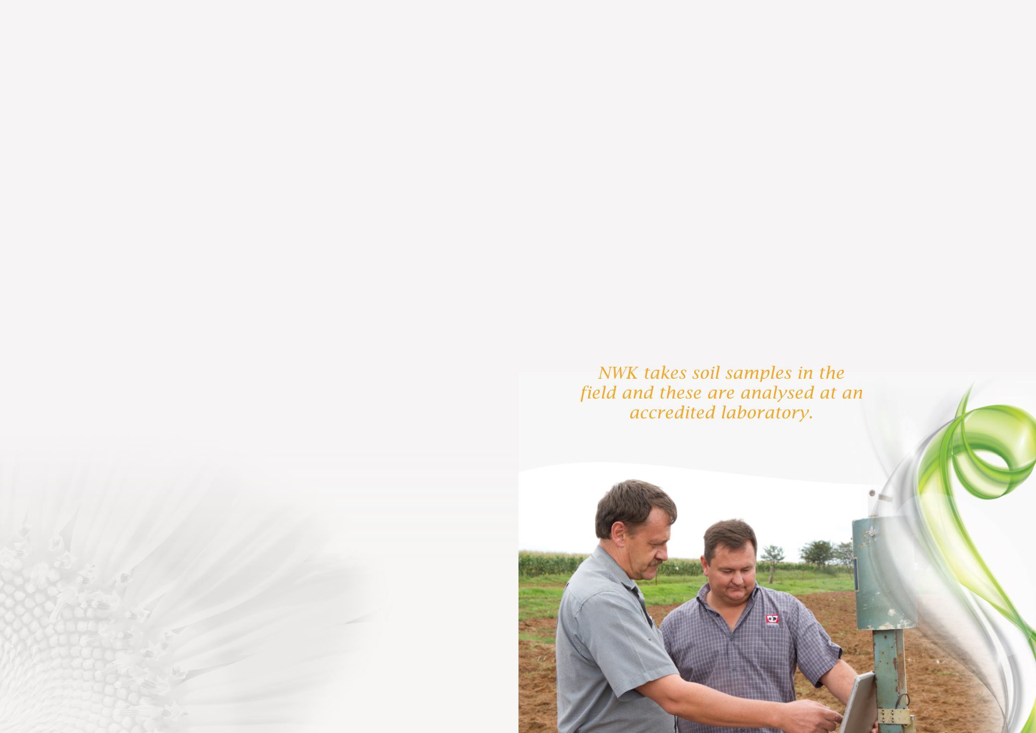 various fields. NWK takes soil samples in the field and these are analysed at an accredited